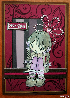Alle bisherigen Karten waren vintage (meine eingeschlossen), deswegen habe ich im "Blitzmodus" innerhalb einer kanppen Stunde noch schnell ein cute-Kärtchen gezaubert...allerdings sind die Farben in echt etwas kräftiger koloriert.